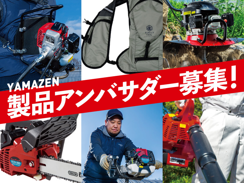 山善の製品PRを一緒に盛り上げてくれるアンバサダーを大募集します! 山善製品の数々を試せる&もらえるチャンス、農業・造園業に携わる皆さまのご参加をお待ちしております!