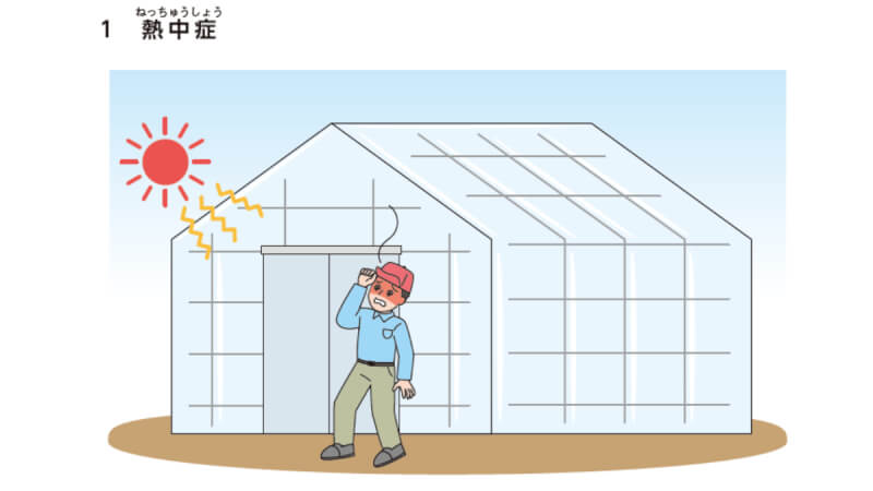 熱中症のリスクが特に高いのは、草刈りや薬剤散布などの重労働、エアコンの効かないトラクターでの長時間運転、ハウス内作業だ。同じ屋外作業でも環境によってリスクは異なる。畑は直射日光にさらされるが、風通しがある。一方、ハウス内は高温多湿で風通しが悪く日陰もないため、リスクが格段に高まる。