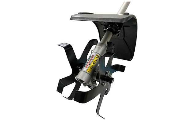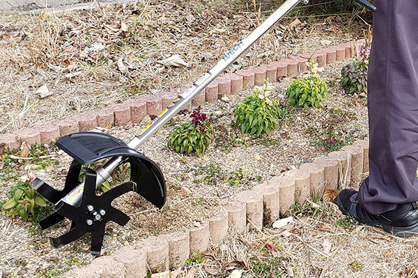 また、腰をかがめて行う草抜き作業を省力化する製品として開発したのが、雑草を根元から粉砕する刈払機用アタッチメント「うね草取りまー」です。刈払機に取り付け、立姿勢のまま作業ができるため、草抜き作業をラクに、効率良く行っていただけます。