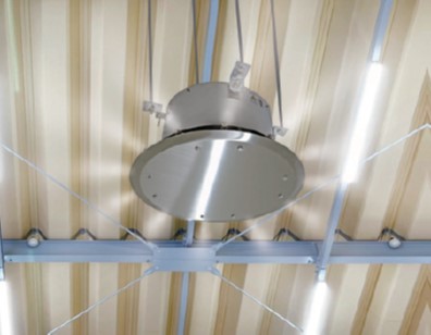 強力ファンと円周上に並んだミストノズルで大空間を強力加湿するエアレス加湿器