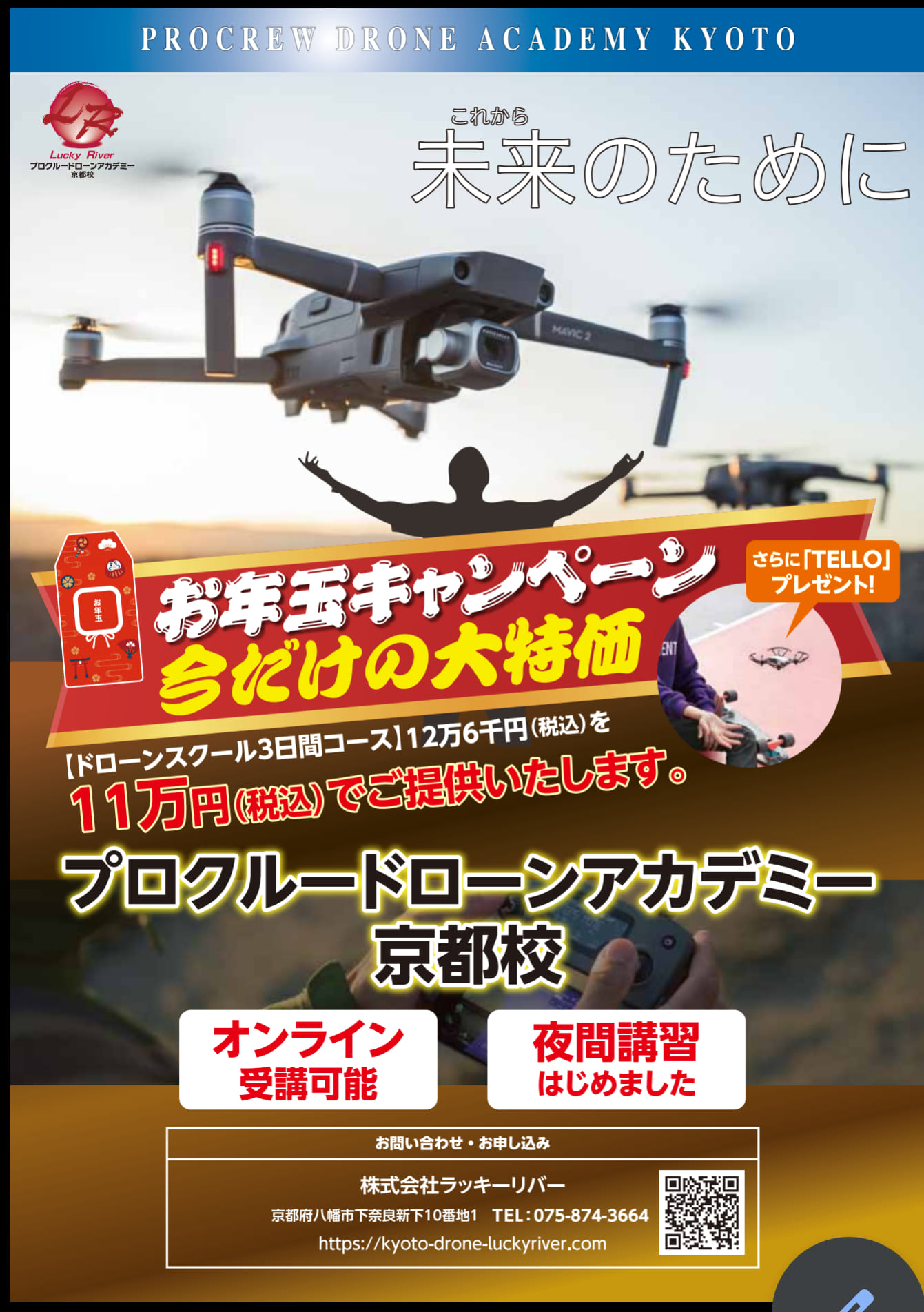 2021/1/14 「ドローン講習」が特別価格で受講可能! ラッキーリバーがブースを更新