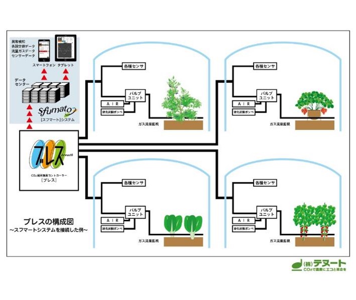 低コストで環境に優しいCO2局所施用コントローラー。CO2と空気を併用制御する当社独自の技術で光合成を促します。