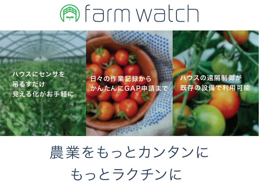 farmwatchは農家様が少しでも「良い作物をつくる・提供する」に集中できるようご助力することをコンセプトとし、直に農家様からの声を聞きながら、サービス・製品を作り上げました。