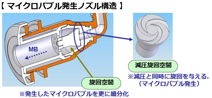低騒音低騒音発生ノズルの開発と遠心式ポンプの採用により騒音を低減