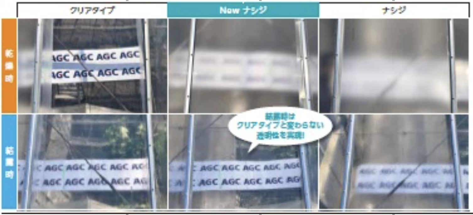 エフクリーン®New ナシジは、結露時にクリアタイプと変わらない透明性を実現しました。