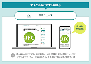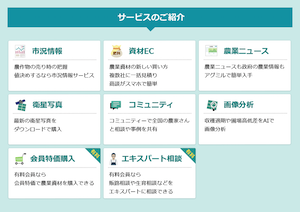 従来の資材比較・相談購入サービスに加え、農業に特化したニュース、農業エキスパートやメーカーに直接相談や質問ができ、様々な事例紹介ができるコミュニティ、毎日更新の市況情報、画像解析など多様なサービスを提供し続けている農業情報プラットフォームです。