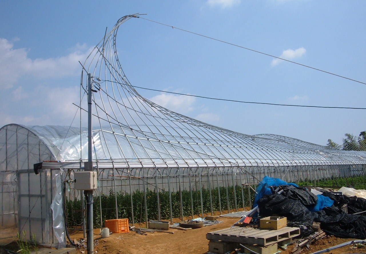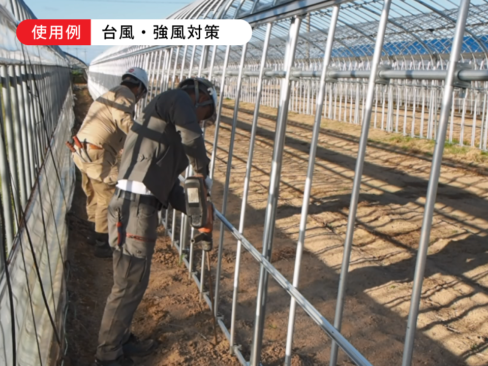 ビニールハウスの浮き上がりによる倒壊や強風で吹き飛ぶ事故を未然に防ぐために…。