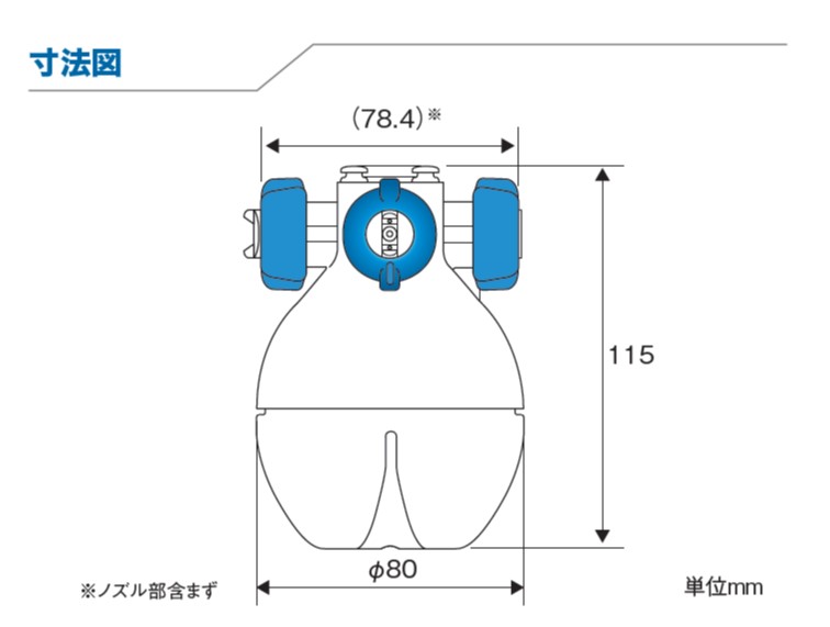 質量※SUS303製ノズル装着時ノズル1個付:約210g ノズル4個付:約250g