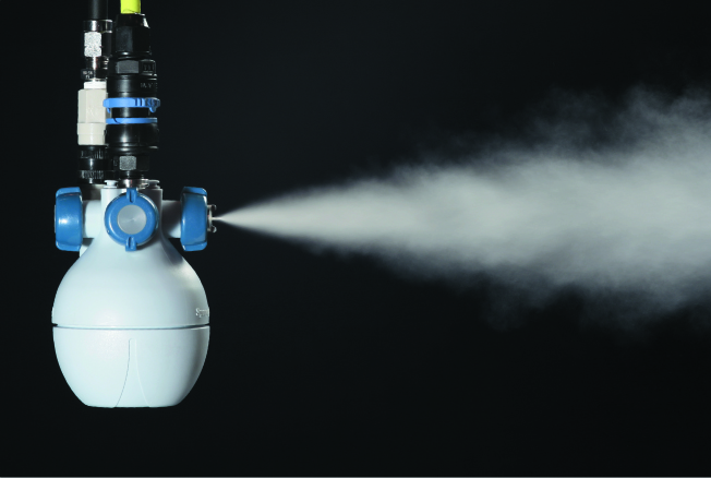 ●ミニフォッガーⅢの加湿ノズルは、穴詰まりの少ないダブルアトマイジング方式。均一性に優れた超微細ミストを生成。