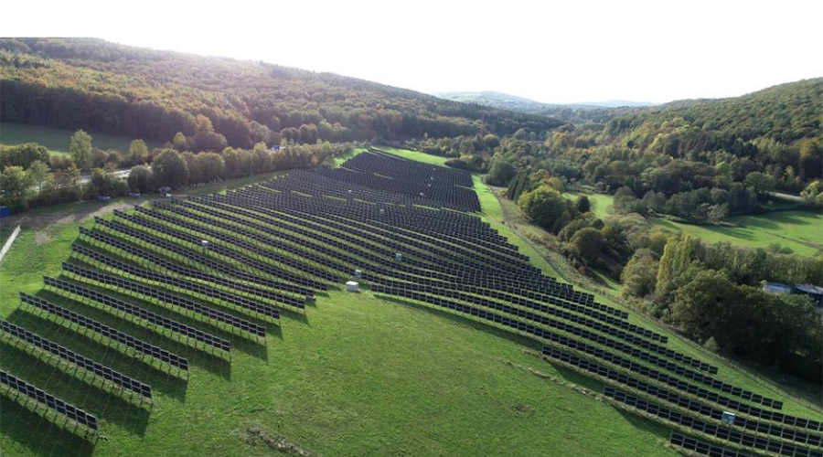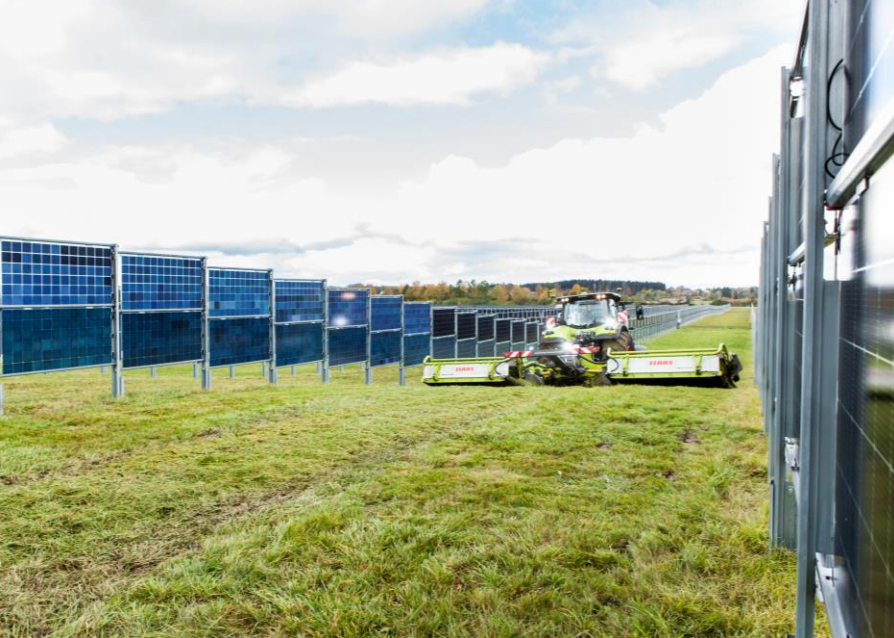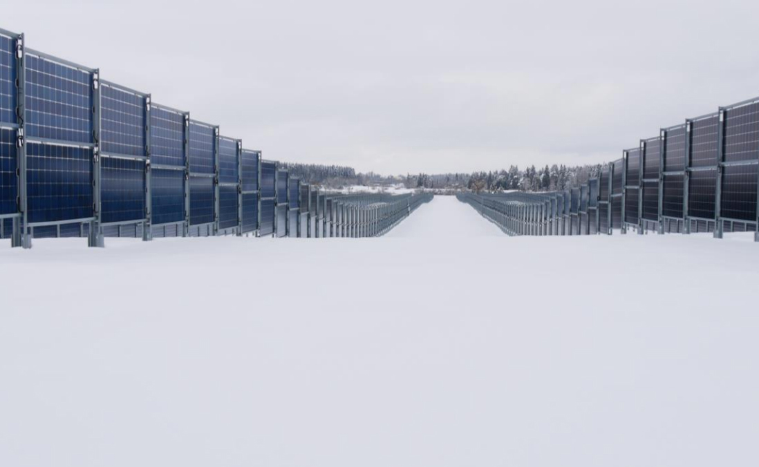 ドイツの架台メーカーNext2Sunの垂直架台とLuxor Solarの両面ガラスモジュールのセット。両面ガラスモジュールとの併用により、条件によっては25%以上の収益性の向上が見込める垂直設置型架台!