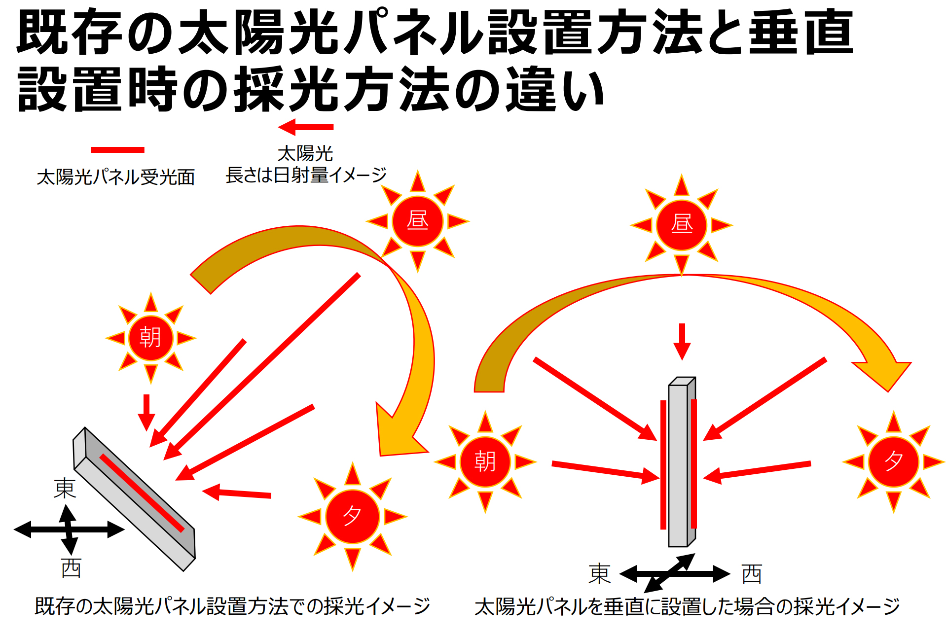 垂直設置型モジュールは既存の斜め設置モジュールと比べ夏や冬の発電量の差が小さく一年を通して安定的な発電が可能です。