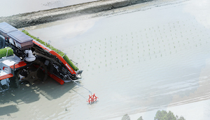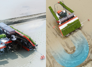 高い植付性能とICT技術で、美しく正確な田植え作業を実現。高出力ディーゼルエンジンと軽量ボディで湿田でも力強い走破性を発揮します。直進キープ(GS)機能搭載仕様も。