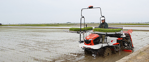 ICT機能で田植え作業の高精度化や低コスト化を実現する乗用形田植機「ナビウェル」。株間キープ・施肥量キープ・直進キープ・条間アシストの3キープ1アシスト機能搭載。GPSを活用することで、ほ場条件の影響を受けにくく、株間(株数)、施肥量をキープ。さらに、条間のズレがあるときにお知らせするアシスト機能も搭載したので、直進キープ機能がさらに使いやすくなっています。