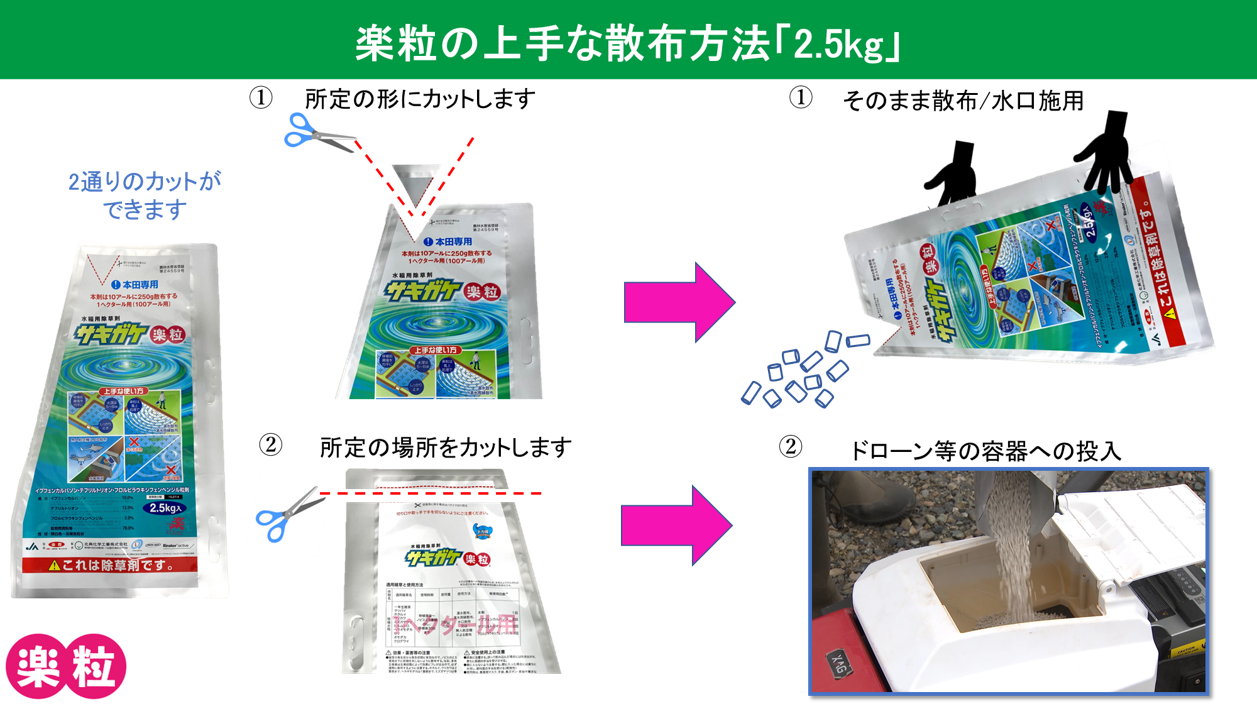 3成分の楽粒です。ノビエ等の一年生雑草をはじめホタルイ、ウリカワ等、幅広い草種に速効的で高い効果を示す。新規有効成分フロルピラウキシフェンベンジルを含み、種々の抵抗性雑草にも有効です。
