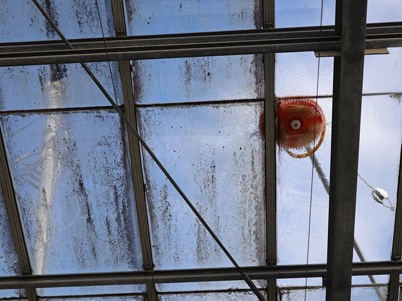 日照確保の天敵、ハウスの苔をキレイに洗浄! ハウスの洗浄・遮光剤落としに使える水圧回転式高速ロータリーブラシ洗浄機です。