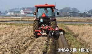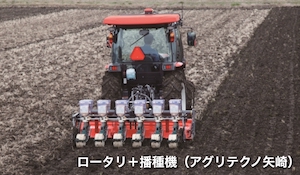 大豆の播種作業は、種と肥料の減り具合がそれぞれ違うので後ろを見て把握しないと いけません。後ろを振り返るたびにハンドルを動かしてしまって曲がることがありま すが、これならハンドル操作に集中しないで済むのでその問題が解消されます。