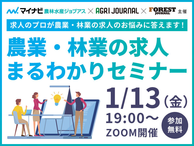 繁忙期や事業拡大の際に行う採用活動。「費用をかけても人が集まらない」「右腕が育たない」という悩みを解決すべく、「マイナビ農林水産ジョブアス」とのコラボセミナーを開催! 今回は採用の基礎知識に加え、具体的な採用活動の行い方まで解説いただきます。
