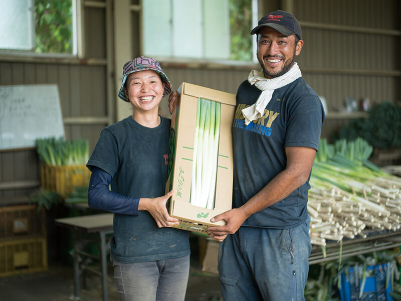 メイン画像右:長野県塩尻市にて6haの白ネギを栽培する、農業生産法人「合同会社ゲインズエンタープライズ」の代表・丸山浩太さん。