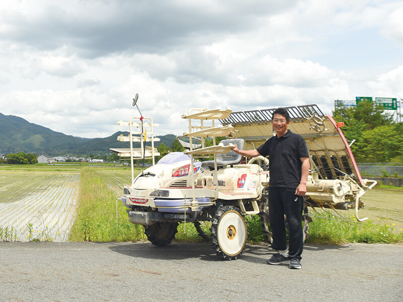 「紙マルチ田植機との最初の出会いは学生時代にさかのぼります。紙マルチを研究していた鳥取大学の津野幸人先生から、その存在を聞かされたのです。水稲を無農薬栽培するなら紙マルチ田植機、とインプットされたのでしょうね(笑)。就農してすぐ、仲間を集めて購入しました。今から30年ほど前になります」。