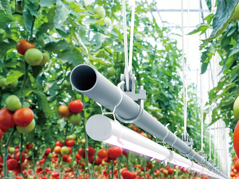 トマトなど、上部に向かって伸びていく作物に対して、成長に合わせてLEDを昇降させることで適切に光を当て、育成や防除を促す。またイチゴなど低い位置で栽培する作物には、光を当てたい時はLEDを下降させ、作業中は上昇させておくといった使い方ができる。