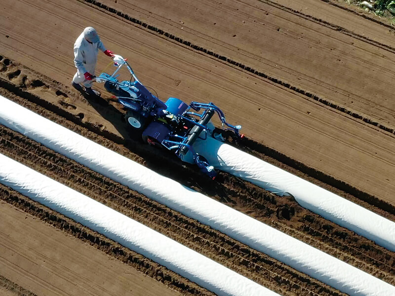 土中で分解されるOJIサステナマルチを導入すれば、マルチを剥がす作業とは無縁に。