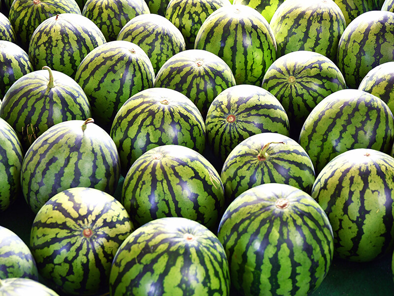 山形県の村山市、大石田町、尾花沢市は「尾花沢スイカ」と呼ばれるブランドスイカの産地。この地域は栄養豊富な黒ボク土壌で、盆地ならではの昼夜の寒暖差のある気候がシャキッとした食感の甘いスイカを育んでいる。