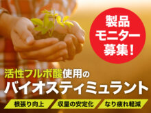 高温ストレス対策や根張り向上に効果がある「活性フルボ酸」のバイオスティミュラントを試してみませんか? 新たな資材に興味はあるけれど、本当に効果が出るか試してみたいという方は、ぜひ奮ってご応募ください!