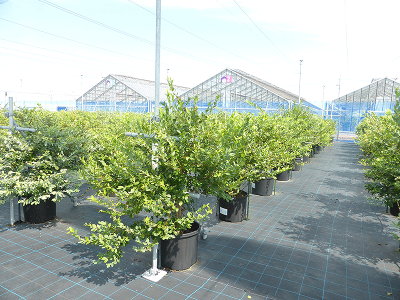 繊細なため栽培が難しいハイブッシュ系のブルーベリーも、「ブルーベリーバッグカルチャーシステム」を利用すれば、失敗なく栽培可能。ハイブッシュ系のブルーベリーは、実が大きく食味が良いため、市場で人気。写真はサザンハイブッシュ系の「スプリングハイ」。