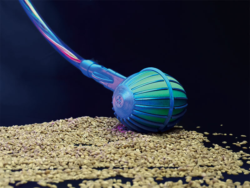 英スコットランドで開発された「クローバー」は、独自の穀物遊泳ロボットを活用した穀物貯蔵管理システムだ。このロボットには、粉粒体中の移動を可能とする世界初の技術を実装。穀物の中に完全に潜った状態で全方向に移動しながら、センサーで温度や湿度を精緻に測定したり、穀物をかき混ぜて固結を防止する。