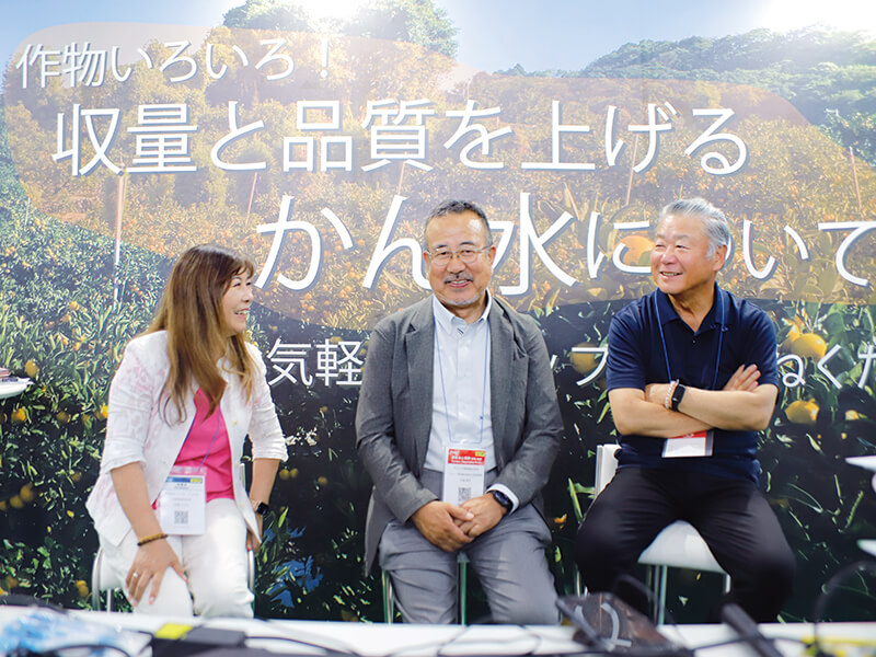 国内有数の農業県、そして柑橘の産地である熊本県で、柑橘の新しい栽培技術について熊本県農業法人協会の香山勇一会長、副会長であり果樹部会会長の牛島清市氏、灌水機器資材の輸入販売を行う株式会社サンホープの益満ひろみ社長にお話を伺った。