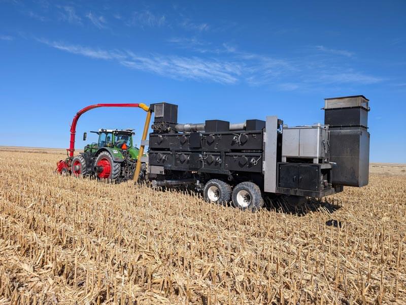 同社の技術は、例えばトウモロコシから粒を取った後の茎と皮のような、圃場でうまれる廃棄物を自動で回収し、高温熱分解によってバイオ炭に加工するものだ。この技術の主な利点は、大規模生産が可能で、今後数年間でさまざまな農業分野に拡大する可能性があることだ。
